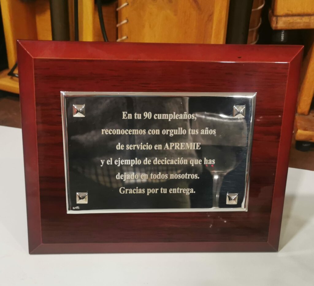 El pasado viernes, Pedro Herrero, presidente de honor de APREMIE, celebró su 90 cumpleaños rodeado de miembros de la Junta Directiva y algunos asociados de la Asociación. Durante el acto se le hizo entrega de una placa de reconocimiento en agradecimiento a los años de dedicación y compromiso con APREMIE.